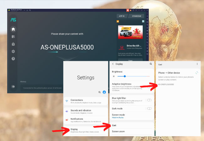 - Tap the name AS + the name of your PC and your phone will be mirrored to your PC screen.
