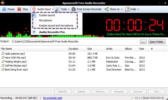 - Install the Apowersoft Free Audio Recorder and open it and set your audio input source.