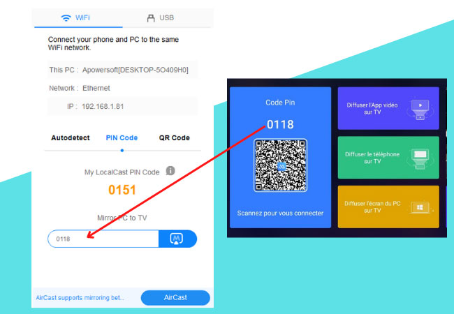 - Choose the PIN code method then input the PIN displayed on your Mi TV. Your PC is now mirrored to your Mi TV.
