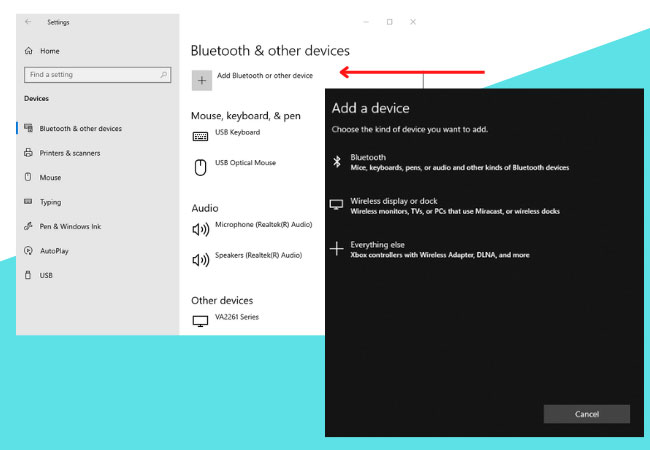 - On your PC, click on Settings > Connected Devices and choose to Add a device. Wait for it to recognize your TV then choose it to start mirroring.