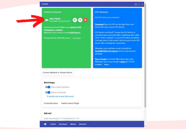 Another simple way for you to screen share Xiaomi to PC is by using Vysor. This allows you to display your mobile phone’s screen to your desktop and other compatible operating systems. You can run and launch apps, Play mobile games from your phone to your PC fast and easily. Here are the steps for you to get started.