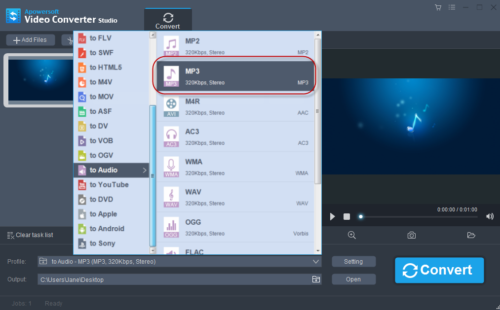 As we know, online solution is restricted by network status. In order to overcome that limitation and convert large file in batch, desktop program is a good choice for you. Video Converter Studio is one of the best converters you can use to Play FLAC on iPhone effortlessly without any loss of quality. It empowers you to make FLAC files available for Apple devices, Android portable devices, etc. Its elegant interface and comprehensive function will guide you to use it with ease. Let’s see how to handle this software.