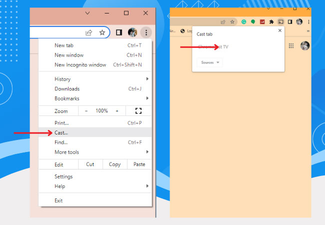 - Choose Cast then click the name of your TV to the searched devices to start mirroring your Windows 11 to TV.