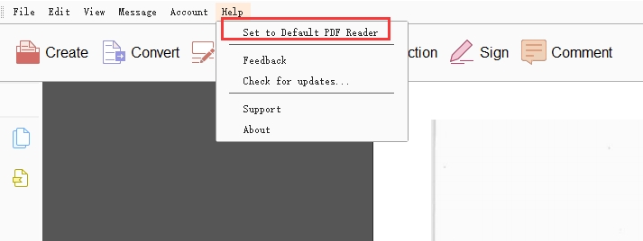 2. Go to “Help” on the tool bar and then choose “Set to Default PDF Reader”.