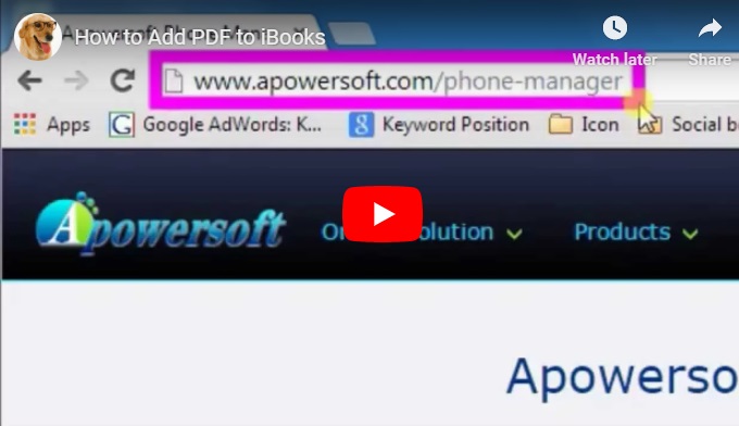 Tips: Actually, there is a faster way to add PDF files from PC to iBooks by using this software. You can click “Books” icon and straightly import files or books into it because iBooks is the default program to open them.