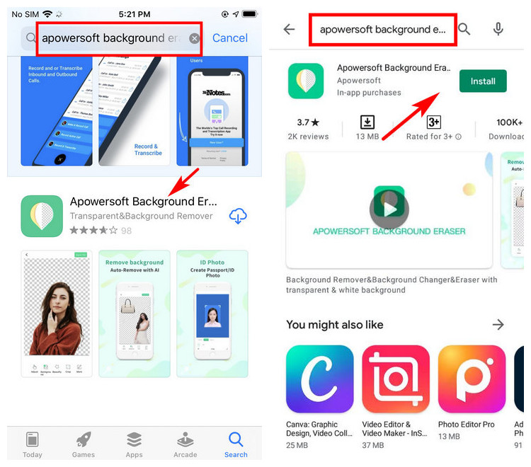 - Search Apowersoft Background Eraser and tap “Install” to download it.
