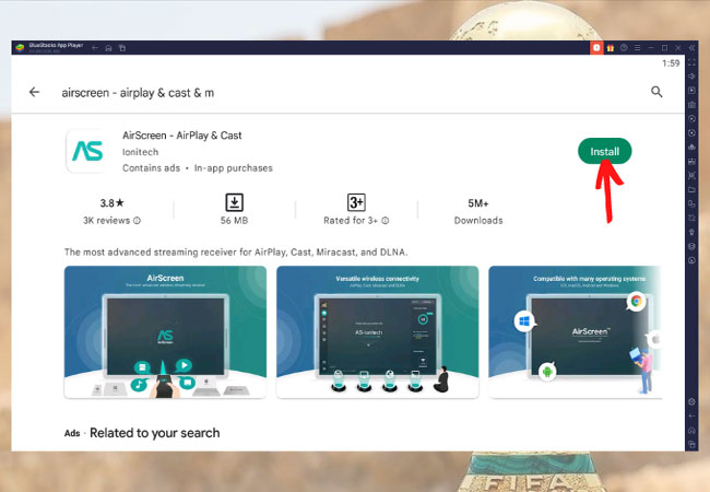 - Download the AirScreen app on the Google Play Store and open the app on your PC once done installing.