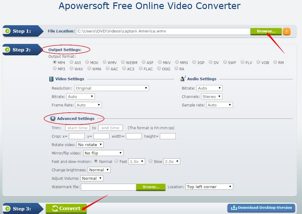 This DVD to MP4 converter online is the easiest one to operate for its vivid webpage, which has guided you the operating progress through four steps. Drag or drop the files for converting and choose the format as output converted format, then enter your email address to receive the file after converting, last is to click “Convert” to do this task feasibly. It has output presets for you to convert videos to device compatible format, including Apple TV, iPad, iPhone and many other digital devices.