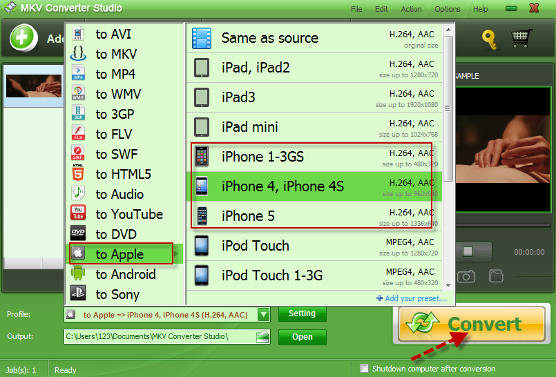 It is worth mentioned that, besides MKV to iPhone, the program enables you to convert MKV to iPad, including the latest iPad mini, or other Apple products.