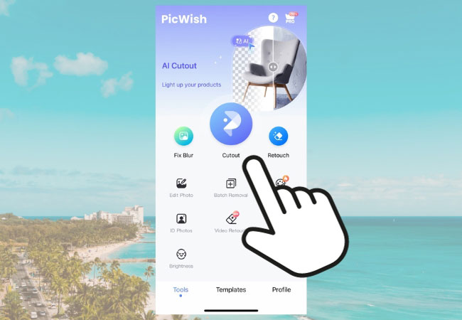 - Run the app, tap the “One-Click Cutout” tab to upload the photo from your phone library.