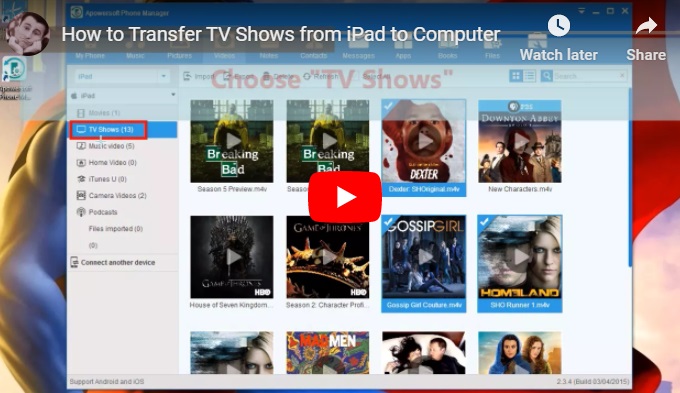 This video gives you a detailed instruction to transfer TV shows from iPad to computer.