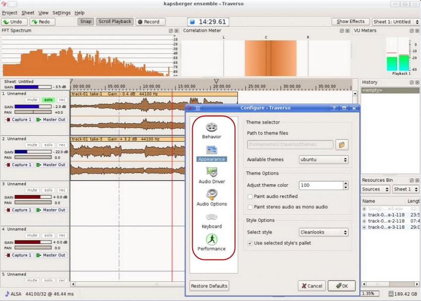 Different from other applications, Traverso DAW features both audio recording and editing functions. This software is very easy to use, the straightforward interface facilitates you to get all the features that need for an efficient audio recording accessible. The DAW on Traverso stands for Digital Audio Workstation and it does live up on its name because you can use it to record sounds, edit files, create CDs, modify sample rate, create CD TOC and many more. For a smooth Ubuntu audio recording, using Traverso DAW will truly help you most.